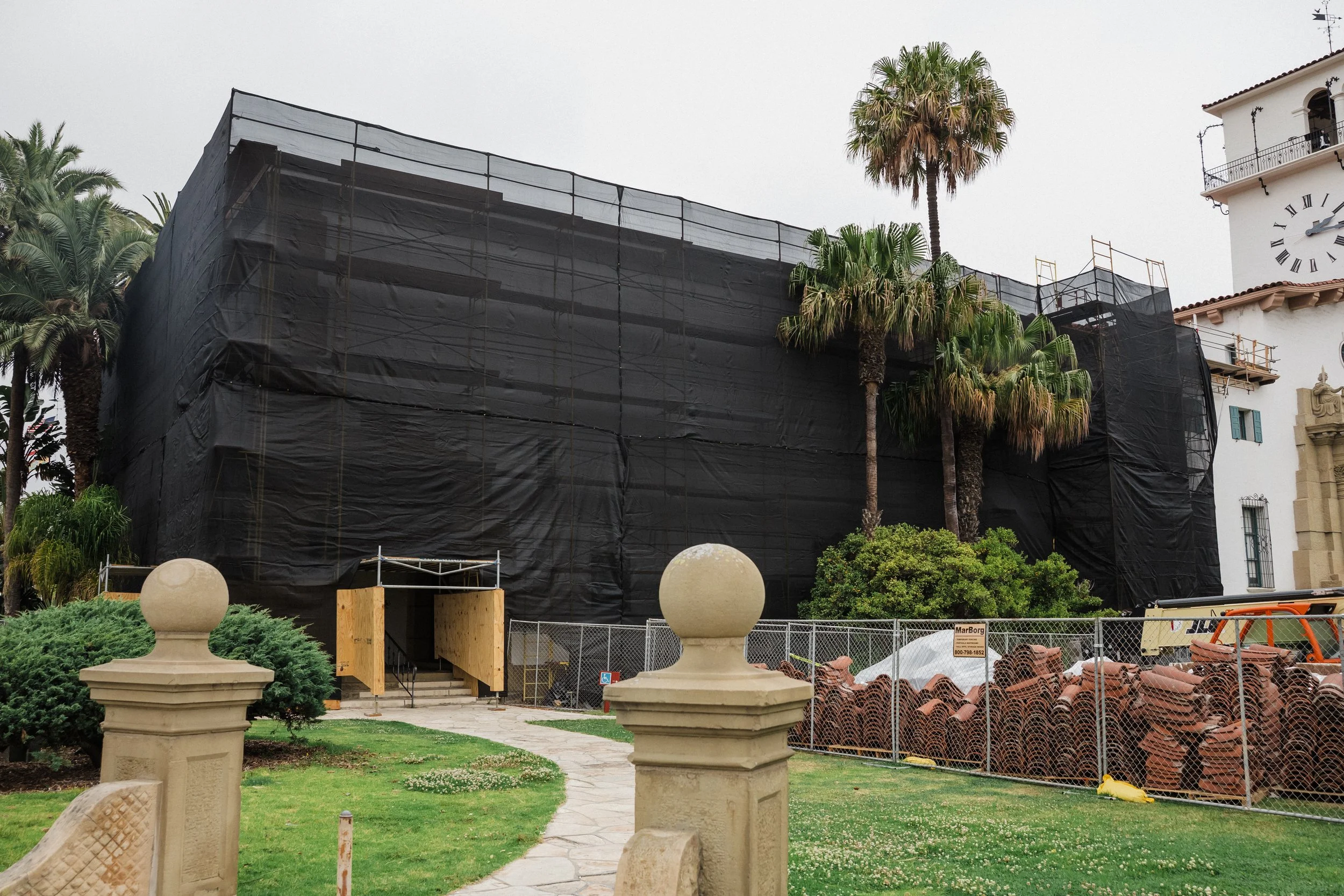 “…the county said that there will be scaffolding around the portion of the building at the corner of Anacapa St and Figueroa St which might detract from photos and aesthetics that visitors and wedding parties expect.”